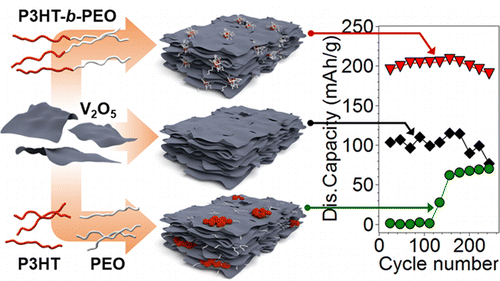 Polymeric binders are essential to maintaining the integrity of electrodes during cycling. Our lab has investigated polymeric binders for V2O5 cathodes and has successfully shown that conducting block co-polymers can be used as a binder to improve the cycle life of V2O5 cathodes. Our group is currently working on polymeric binders to improve the cycling performance and maintain the integrity of electrodes during long cycling times.